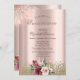 Invitation Diamonds Fleurs Rose or Quinceañera
