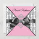 Diamants blancs noir & rose sucré invitation de fête de 16 ans. Les invitations élégantes aux fêtes d'anniversaire rose et noir fonctionnent bien pour une fête d'anniversaire de fille ou de femme. Ajoutez vos détails à l'avant et/ou à l'arrière en cliquant simplement sur le bouton orange "Customisez-le !" pour commencer à ajouter vos détails d'événement, le style de police, la taille et la couleur de police et le libellé. Veuillez noter que tous les modèles d'invitation que vous trouverez sur Zazzle sont des graphiques imprimés sur papier plat stock sans bijoux, arcs, surélevés, gaufrés, ou pièces ou pièces ajoutées.