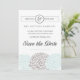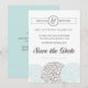 Faire-part de save the date élégants et uniques avec une belle touche de typographie manuscrite et de superbes noms de mariés encadrés. Particulièrement approprié pour un mariage sur le thème bleu ou bleu aqua clair, un thème floral, un mariage en plein air, un mariage de printemps, un mariage d'été, un mariage champêtre ou pour tout mariage avec des fleurs comme pièce maîtresse.