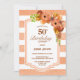 Invitation à la soirée de 50e anniversaire de la fausse parties scintillant d'abricot rayé floral. L'âge de l'invité d'honneur peut être modifié pour convenir à l'exception du 18ème et des âges dans les années 80 pour assurer la grammaticale correcte.