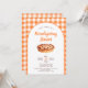 Vous planifiez un dîner d'action d'amitié et vous avez besoin d'invitations? Cette charmante invitation orange présente un design élégant avec illustration de tarte rustique aquarelle. Utilisez les outils de conception pour personnaliser le texte, les polices et les couleurs. Aussi disponible en téléchargement numérique.