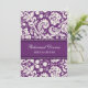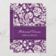 Invitations faites sur commande de dîner de répétition dans pourpre d'aubergine moderne et élégante et crème foncés outre du motif floral classique blanc de damassé. Personnalisez le texte pour créer une invitation unique pour votre dîner de répétition de mariage. Contactez-nous pour demander un changement de couleur. Disponible dans beaucoup de produits assortis de mariage.