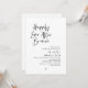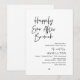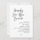 Marquez le début de votre pour toujours avec élégance en utilisant notre carte d'invitation de célébration "Brunch de pour toujours" avec un thème contemporain noir et blanc pour le lendemain de votre mariage en fuite. Parfaite pour les couples qui prolongent leur occasion joyeuse, cette invitation dégage de la sophistication avec une touche de ludicité, préparant le terrain pour un événement mémorable. Ornée d'un thème de design de script moderne intemporel, elle ajoute une touche de charme raffiné à vos festivités. Conçue par TeeshaDerrick, cette invitation promet de capturer magnifiquement votre histoire d'amour.