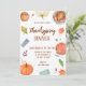 Que vous planifiez un dîner intime ou une grande fête, le design accueillant prépare le terrain pour un délicieux rassemblement rempli de gratitude et de nourriture délicieuse. Cette adorable invitation à dîner citrouille d'automne pour l'action de grâce contient une étonnante aquarelle brûlée citrouille orange et blanc et fleurs d'automne sur le devant et un orange et blanc