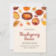 Réunissez vos proches pour un chaleureux dîner de Thanksgiving avec cette charmante invitation illustrée. Le design présente un délicieux assortiment d'aliments Thanksgiving et des éléments d'automne dans des tons vibrants d'orange, de jaune et de rouge, dressés contre un arrière - plan beige doux. Le style d'illustration ludique mais élégant reflète parfaitement l'esprit festif de la fête, faisant de cette invitation un choix charmant pour votre rassemblement de Thanksgiving. Il est sûr de donner le ton pour une soirée mémorable de gratitude et de bonne compagnie.