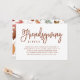 Invitez vos amis à votre version du dîner de Thanksgiving avec ces invitations élégantes ! Un fond blanc présente une typographie manuscrite moderne riche et marron. Le verso de l'invitation de Thanksgiving présente un beau motif de feuilles d'automne.