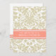 Invitations nuptiales au déjeuner dans l'élégant sable taupe clair brun, rose pêche orange et blanc classique vintage motif damas floral, chic et féminin, personnalisable avec vos détails de douche. Également disponible en cartes de remerciement et invitations pour la fête de mariage.