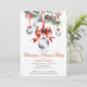 Diner de Noël traditionnel aquarelle modèle invitation instantanée téléchargement, branches de pin avec boules d'argent rouge ruban neige arbres de Noël