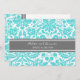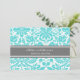 Invitations personnalisées pour le dîner des fêtes dans un motif vintage moderne et élégant turquoise bleu ciel, gris et blanc chic et floral damask classique. Personnalisez le texte pour créer une invitation unique pour votre dîner de répétition mariage. Contactez-nous pour demander un changement de couleur. Disponible dans de nombreux produits mariages correspondants.