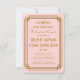 Ces invitations à des dîners de répétition présentent une palette de couleurs rose et or, un cadre géométrique et d'autres détails stylistiques inspirés de l'Art Déco et des années folles. Vous pouvez customiser les champs de texte d'exemple à votre convenance.