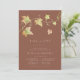 Tombez amoureux de ces invitations modernes et minimes pour des dîners de répétition d'automne. Le design épuré et minimaliste présente un arrière - plan en terre cuite chaleureux agrémenté de feuilles d'aquarelle aux couleurs de l'automne. "Fall in Love" apparaît sous la forme d'un doux lettrage blanc cassé, ainsi que les détails de votre cérémonie de répétition et de célébration.