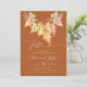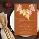 Cette invitation à la répétition présente de belles feuilles d'automne, ce qui en fait un endroit parfait pour une fête sur le thème de l'automne. Le tas de feuilles d'automne ajoute une touche de fantaisie et de plaisir, et le design général est parfait pour célébrer le prochain mariage du couple.