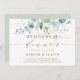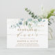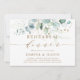 Cette invitation au dîner de répétition comprend de l'eucalyptus aquarellé, des feuilles vertes botaniques et des feuilles de paillettes dorées avec un script doré.