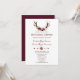 Un design rustique et bohème pour des événements spéciaux, toutes saisons ! Ce design présente des bois de cerfs, un bouquet de fleurs de marsala, des flèches avec des fleurs de marsala et au fond un arrière - plan bordeaux. Utilisez l'outil Personnaliser pour ajouter vos informations. Pour plus d'informations, visitez s'il vous plaît, ma collection Floral Antlers de Marsala Bourgogne.