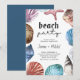 Plage Party Rehearsal Dîner invitation, encadré de coquillages d'aquarelle et de créatures océaniques. "beach party" est écrit à la main et le texte restant est entièrement modifiable.