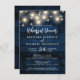 Ce modèle d'invitation à la répétition d'inspiration boho rustique dispose de lampes à cordes avec un arrière - plan rustique en bois de marine.