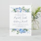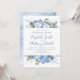 Aquarelle bleu poussiéreux hydrangée, fleurs blanches et eucalyptus verdure répétition dîner invitations