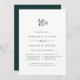 Élégante invitation à dîner de répétition monogramme comprend vos initiales jointes par un script de calligraphie d'esperluette. Personnalisez avec votre cérémonie de répétition et de dîner ou les détails de la célébration en lettres vert chasseur. Un choix intemporel en noir et blanc classique pour d'élégants dîners de répétition en toute saison.