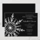Invitez vos invités à votre fête de pré-mariage sur le thème de la merveille hivernale de décembre, janvier ou février en l'honneur des futurs mariés avec l'élégante invitation de dîner de répétition de mariage hivernal aux flocons de neige noir et blanc. Cette invitation de dîner de répétition de mariage hivernal sur mesure présente un design complexe de flocons de neige blancs sur fond noir. Une inspiration parfaite pour votre événement de célébration festive.