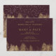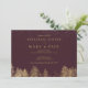 Préparez-vous pour la grande journée avec cet élégant mariage de répétition chic avec feuille d'or Hiver neige rouge bordeaux mariage de forêt de pins dorés avec pins dorés montrant un pays merveilleux de bois, avec une typographie élégante et moderne.