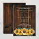 Invités Invitations à votre dîner de répétition avec une invitation à dîner de répétition de mariage de tournesol rustique. Le design de l'invitation comprend un arrière - plan rustique en bois avec un élégant bouquet de tournesols. Personnalisez avec les noms du marié et de la mariée avec les détails du dîner de répétition. Papier à lettres mariage supplémentaire disponible avec cette conception aussi.