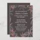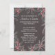 Symbole de l'amour et des baisers, des feuilles de feuilles de feuillage dessinées à la main avec des baies rouges bordent l'invitation à la broche. Le arrière - plan est un gris ardoise moderne. Personnalisez cette invitation de fiançailles fantaisiste avec vos informations, le dos a de l'espace pour plus d'informations si vous avez besoin de fournir d'autres détails tels que des directions ou des cartes. Ces invitations romantiques sont idéales pour un mariage d'hiver, de Noël ou de vacances.