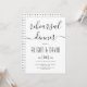 Scénario cursive ctypographie mariage répétition invitation à dîner. L'arrière comprend un motif géométrique noir et blanc.