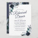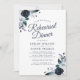 Élégante répétition mariage de la marine invitations dîner avec un arrière - plan blanc branché qui peut être changée en n'importe quelle couleur, fleurs rustiques de couleur boho bleu aquarelle, et un modèle de dîner mariage moderne.