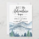 Elégante aquarelle rustique montagnes et forêt scène dîner de répétition mariage, avec des arbres et des montagnes bleu et vert luxuriants avec un texte écrit : laissez l'aventure commencer. Pour ceux qui aiment une ambiance de rêve romantique boisée pour leur cérémonie et célébration. Pour voir la collection complète des matériaux correspondants pour cette conception, veuillez visiter : https://www.zazzle.com/collections/rustic_forest_mountain_wedding-119965625201006103