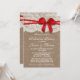 Invitation Dîner de répétition du Mariage Red Bow Burlap & La