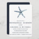 Célébrez et remerciez vos meilleures filles avant le grand jour ! Conçu pour correspondre à nos invitations et accessoires de mariage Seahorse et Starfish, ce dîner nautique chic de répétition mariage présente une illustration de style vintage dessinée à la main en bleu marine. Parfait pour les mariages de plage, d'été ou de nautique. Cette conception fait partie d'une collection, veuillez visiter notre magasin pour les articles correspondants. Pour une demande personnalisée, veuillez nous contacter à l'adresse citronelladesign@gmail.com