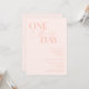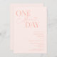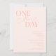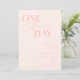 Dîner de répétition minimaliste mariage avec un texte de typographie qui dit "un jour de plus". L'arrière - plan est rose vif.