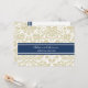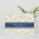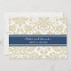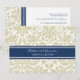 Invitations personnalisées pour le dîner de soirée dans un motif vintage moderne et élégant, tan taupe brun, bleu marine foncé et blanc chic et floral damask classique. Personnalisez le texte pour créer une invitation unique pour votre dîner de répétition mariage. Contactez-nous pour demander un changement de couleur. Disponible dans de nombreux produits mariages correspondants.