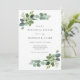 Dîner de répétition mariage avec feuilles et succulents d'eucalyptus à l'aquarelle. Customisez avec vos informations pour le couple. Cliquez sur "cliquer pour customiser plus loin" pour modifier le style, la taille ou la couleur de la police.