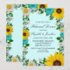 Dîner de répétition rustique avec des tournesols vibrants, des marguerites blanches traditionnelles et des fleurs turquoises contre un arrière - plan d'aqua clair avec respiration pour bébé et des accents de verdure botanique