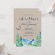 Cette invitation à la répétition de Rocky Mountain Kraft est parfaite pour une répétition de mariage en plein air. Le design présente un paysage sauvage peint en bleu et vert avec des pins d'aquarelle, des oiseaux et des montagnes sur un arrière - plan en papier kraft léger. Veuillez noter que ceci n'est pas imprimé sur du papier kraft réel. C'est un graphisme de haute qualité fait pour ressembler à du papier kraft.