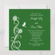 Les succulents sont l'une des tendances les plus récentes dans le design floral mariage. Ces plantes exotiques ornent une vigne tourbillonnante, ce qui renforce subtilement le style de cette invitation à dîner de répétition vert foncé.