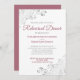 Cette belle invitation à dîner de répétition mariage présente un design simple mais élégant de rose poussiéreux ou de texte mauve rose et gris sur un arrière - plan blanc avec des boucles de faux feuille argent ou de la fibre dans les coins. Bienvenue membres de votre mariage et invités spéciaux à partager dans un dîner de répétition avec ces invitations magnifiques. Cet invitation est entièrement personnalisable, vous pouvez donc modifier le texte en fonction de votre situation et de vos besoins.