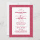 Magenta rouge mariage moderne répétition dîner conception d'invitation avec un motif feuille botanique artistique sur un arrière - plan magenta branché. La calligraphie et l'écriture audacieuses sont en magenta sur un arrière - plan blanc et présentent les prénoms et les noms de famille du couple astucieusement positionnés sur une plus grande esperluette de coordination. Un modèle à la mode vient compléter le design unique. Le dos de la carte répète le motif feuille. Pour obtenir de meilleurs résultats, remplacez les détails du modèle par vos propres informations en laissant de l'espace entre les paragraphes comme dans l'exemple et utilisez toutes les majuscules lorsque cela est spécifié. Envoyez un e-mail à invitationsuites@gmail.com avec des questions ou utilisez le lien de message pour les demandes de couleur personnalisées.