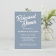 Dîner de répétition mariage de style simple, avec des lettres blanches et stylisées sur un arrière - plan bleu poussiéreux et tendance. Modifiez vos invitations en remplaçant les noms, la date/heure, l'emplacement et les coordonnées par les vôtres. Sélectionnez votre taille d'invitation et votre style de papier.