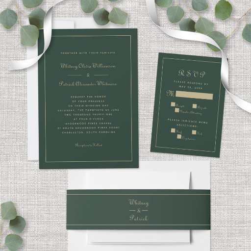 Invitation Dîner de répétition Mariage Emerald Green & Gold