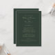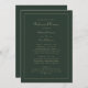 Dîner de répétition mariage classique avec un élégant script en couleur or classique sur un arrière - plan vert émeraude foncé riche. L'arrière de l'invitation correspond & est solide vert émeraude. Le libellé convient à un événement traditionnel et formel mariage de l'église. Utilisez le modèle moderne simple pour remplacer le texte d'exemple par vos détails. Demandes de couleur personnalisées acceptées. Contactez-moi à l'adresse invitationsuites@gmail.com ou utilisez le lien de message dans cette liste si vous avez des questions ou avez besoin d'aide pour ce projet ou l'un de nos designs.