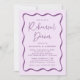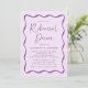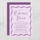 Invités Invitations à votre dîner de répétition en style avec nos invitations à dîner de répétition mariage Modern Purple Wavy Frame. Le design comporte les mots "Dîner de répétition" affichés dans un script mauve manuscrit qui contraste avec un arrière - plan violet clair. Les détails de votre dîner de répétition sont entourés d'une bordure ondulée violette. Cette invitation à la répétition rétro est parfaite pour des dîners de répétition décontractés et modernes.