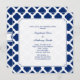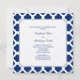 Motif Royal bleu et blanc en quatrefoil avec des invitations à dîner de répétition monogrammes.