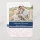 modèle photo sur mesure répétition dîner invitations à la fête dans le moderne et élégant rose pâle pastel clair, bleu marine foncé et blanc chic et floral classique damask motif vintage. Personnalisez le texte pour créer une invitation unique pour votre dîner de répétition mariage. Contactez-nous pour demander un changement de couleur. Disponible dans de nombreux produits mariages correspondants.