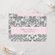 Invitations personnalisées pour le dîner de soirée dans un motif vintage moderne et élégant de couleur rose clair, gris fusain et blanc chic et classique à motifs floraux damas. Personnalisez le texte pour créer une invitation unique pour votre dîner de répétition mariage. Contactez-nous pour demander un changement de couleur. Disponible dans de nombreux produits mariages correspondants.
