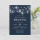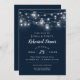 Des invitations à dîner sur mesure et sur mesure pour les répétitions de mariage avec un modèle facile à utiliser pour la personnalisation. Ce design rustique chic présente des brins de lumières clignotantes et des jarres de maçon sur un arrière - plan bleu marine foncé. Personnalisez l'invitation avec les détails de votre dîner de répétition ou customisez le texte à utiliser pour n'importe quel événement. Utilisez les outils de conception pour choisir n'importe quelle couleur arrière - plan, ajouter des photos et customiser les polices de texte et les couleurs pour créer un design unique pour votre fête de répétition mariage.