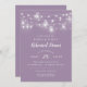 Des invitations à dîner sur mesure et sur mesure pour les répétitions de mariage avec un modèle facile à utiliser pour la personnalisation. Ce design rustique chic présente des brins de lumières à cordes brillantes et des jarres de maçon sur un arrière - plan lilas poussiéreux. Personnalisez l'invitation avec les détails de votre dîner de répétition ou customisez le texte à utiliser pour n'importe quel événement. Utilisez les outils de conception pour choisir n'importe quelle couleur arrière - plan, ajouter des photos et customiser les polices de texte et les couleurs pour créer un design unique pour votre fête de répétition mariage.