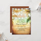 Dîner absolument romantique, élégant et unique sur la plage invitation avec collier de lumières suspendues sur les palmiers. Invitations de la plage tropicale et moderne avec coucher de soleil coloré en bord de mer. Parfait pour destination île nuit avant mariage aussi.