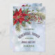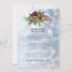 Belle botanique mariage d'hiver invitation de répétition avec Poinsettia rouge, baies et spray de pin. L'Arrière - plan a un effet bokeh blanc et bleu doux avec un léger dépoussiérage des flocons de neige. Elégante collection de mariages de Noël a des idées cadeaux et des cartes assorties.Customisez le texte élégant à l'avant et à l'arrière avec vos informations.